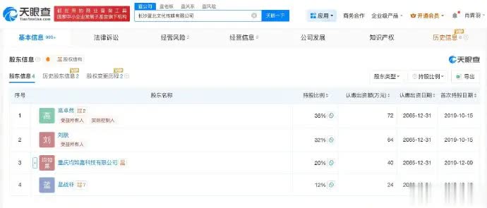 此外据企查查信息显示,蓝战非名下关联7家企业,2家存续,其名下多家企业于今年注销,包括天津市滨海新区云账户蓝战非文化传媒工作室、长沙仓鼠文化传媒有限公司等。