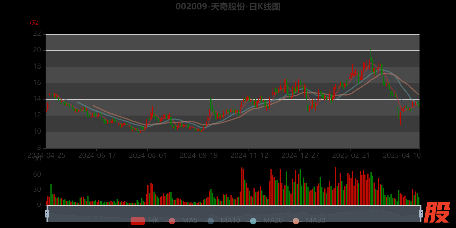 以4月24日收盘价计算,天奇股份目前市盈率(TTM)约为-21.24倍,市净率(LF)约2.8倍,市销率(TTM)约1.83倍。