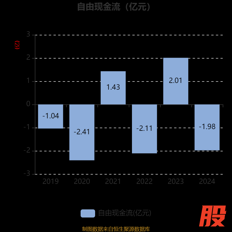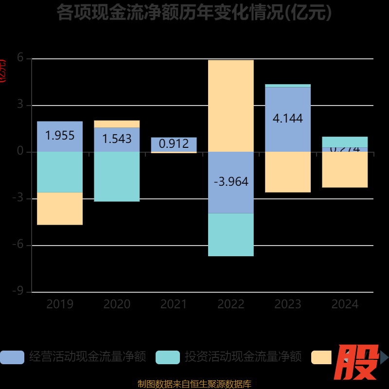 截至2024年,公司经营活动现金流净额为2736.01万元,同比下降93.4%;筹资活动现金流净额-2.3亿元,同比增加3118.18万元;投资活动现金流净额6915.16万元,上年同期为1952.36万元。
