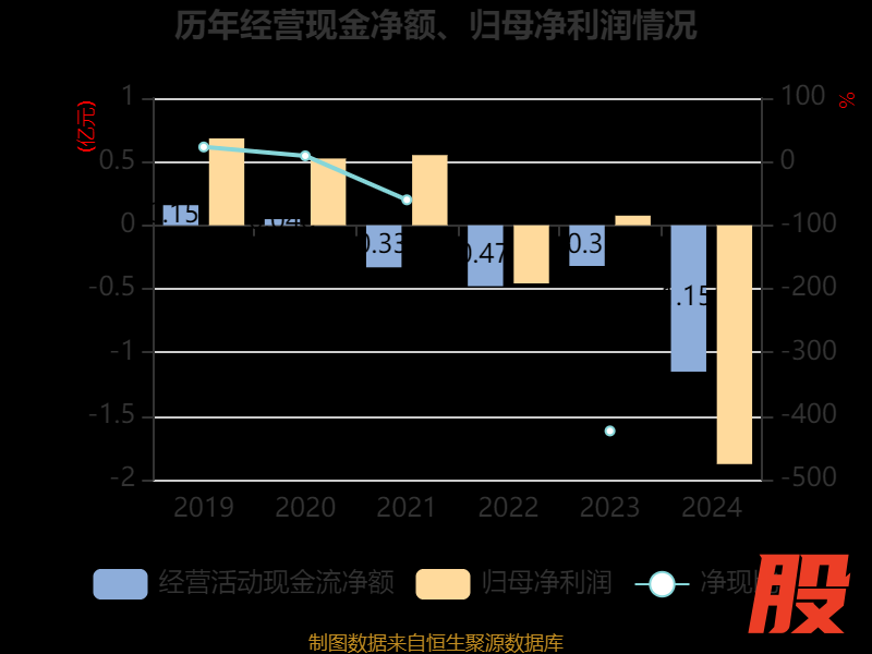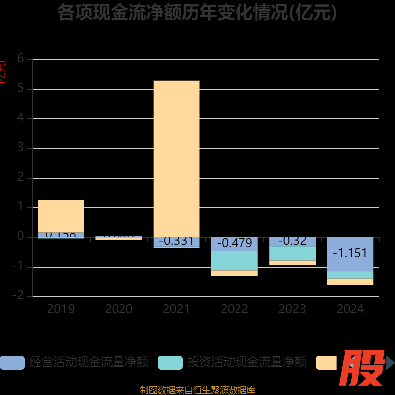 截至2024年,公司经营活动现金流净额为-1.15亿元,同比减少8307.93万元;筹资活动现金流净额-2115.8万元,同比减少533.75万元;投资活动现金流净额-2602.46万元,上年同期为-4730.43万元。
