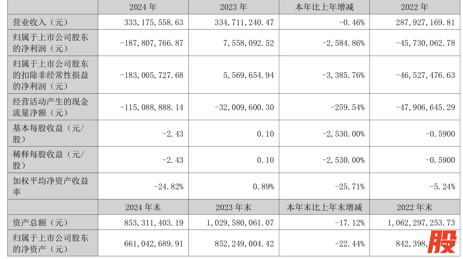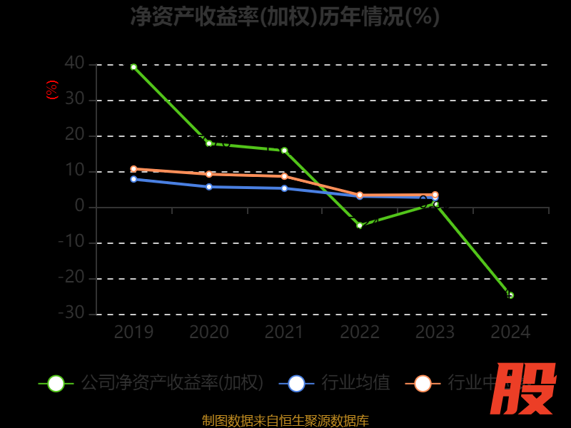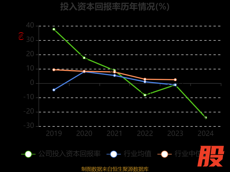 数据显示,2024年公司加权平均净资产收益率为-24.81%,较上年同期下降25.7个百分点。公司2024年投入资本回报率为-24.08%,较上年同期下降22.86个百分点。