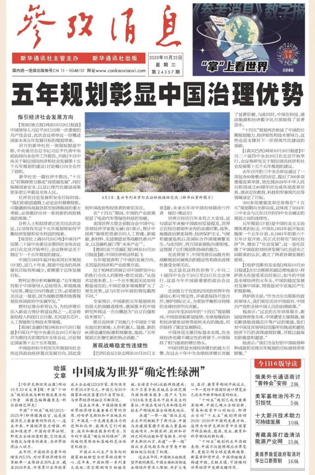 今日出版的《参考消息》数字报,五大看点不容错过。