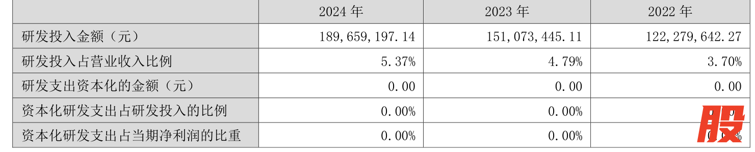 2024年全年,公司研发投入金额为1.9亿元,同比增长25.54%;研发投入占营业收入比例为5.37%,相比上年同期上升0.58个百分点。此外信富网,公司全年研发投入资本化率为0。