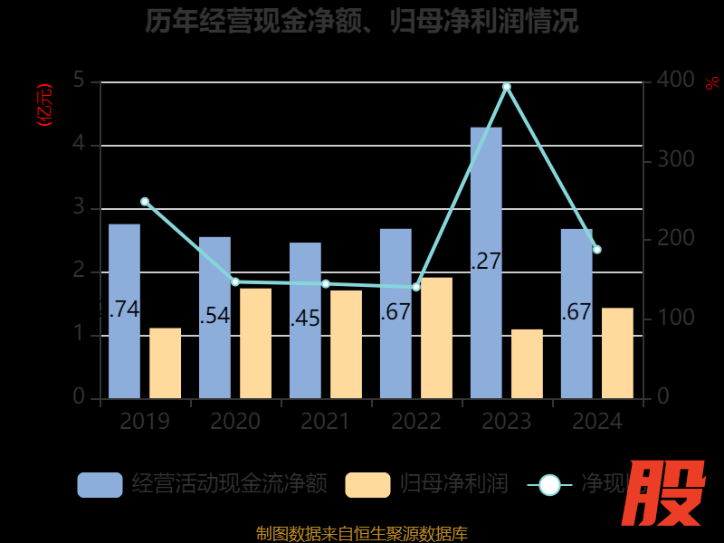 截至2024年,公司经营活动现金流净额为2.67亿元,同比下降37.5%;筹资活动现金流净额-8053.65万元,同比减少11.74亿元;投资活动现金流净额-4.68亿元,上年同期为-9.06亿元。